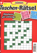 Natürlich hat man auch den Inhalt zum grössten Teil eins zu eins übernommen: Auf Seite 4 und 5 das doppelformatige Schwedenrätsel, dann ein Zahlenkreuzworträtsel, darunter ein Comic, dann zwei hochformatige Schwedenrätsel usw. Man macht sich nicht einmal die Mühe, den Bezug zum Original zu verwischen. Auch unser kleinformatiges Heft RÄTSEL EXPRESS (links) kopieren die Küngschen Rätselmacher und nennen es TASCHEN RÄTSEL (mitte), natürlich in Aufmachung und Inhalt fast authentisch.